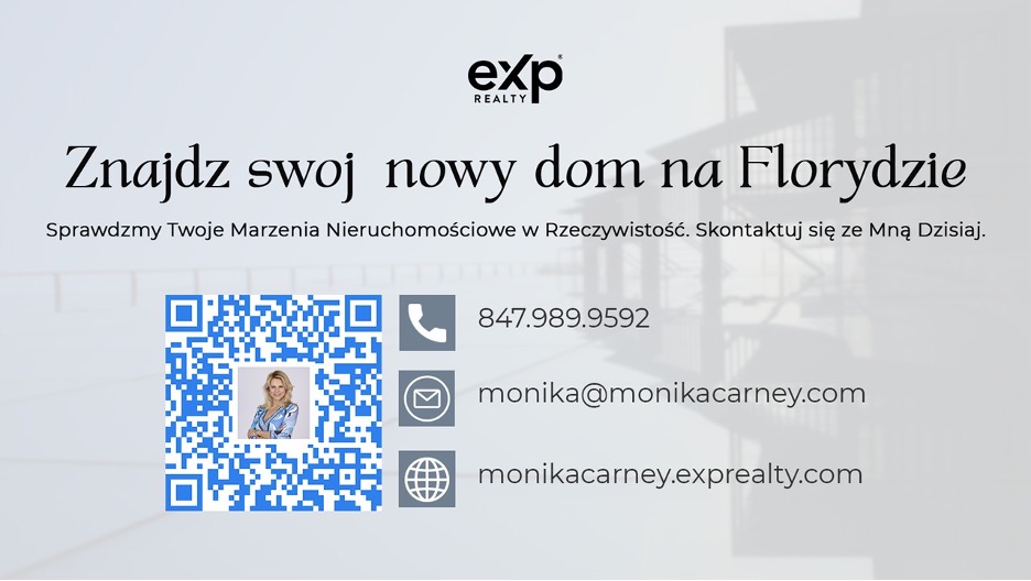 Monika Carney jest licencjonowaną brokerką nieruchomości z ponad 20-letnim doświadczeniem na rynku Greater Chicagoland oraz w północno-wschodniej Florydzie. Jako polskojęzyczna agentka nieruchomości pomaga klientom w zakupie, sprzedaży oraz relokacji między stanami, zapewniając profesjonalne wsparcie na każdym etapie.